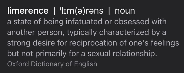 so i've been having these limerence, obsessive thoughts about this guy i've recently met, and it's a thing i've experienced my whole life, but only learnt about during my last relationship. which means i've never been single to observe this pattern and be aware of what it actually is